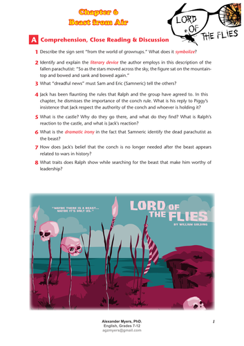. Characterization Now imagine you are the character. Beast from Air Lyrics. Lord of the Flies Chapter 6 Worksheet -Reading comprehension and review worksheet on chapter 6 of Lord of the Flies.